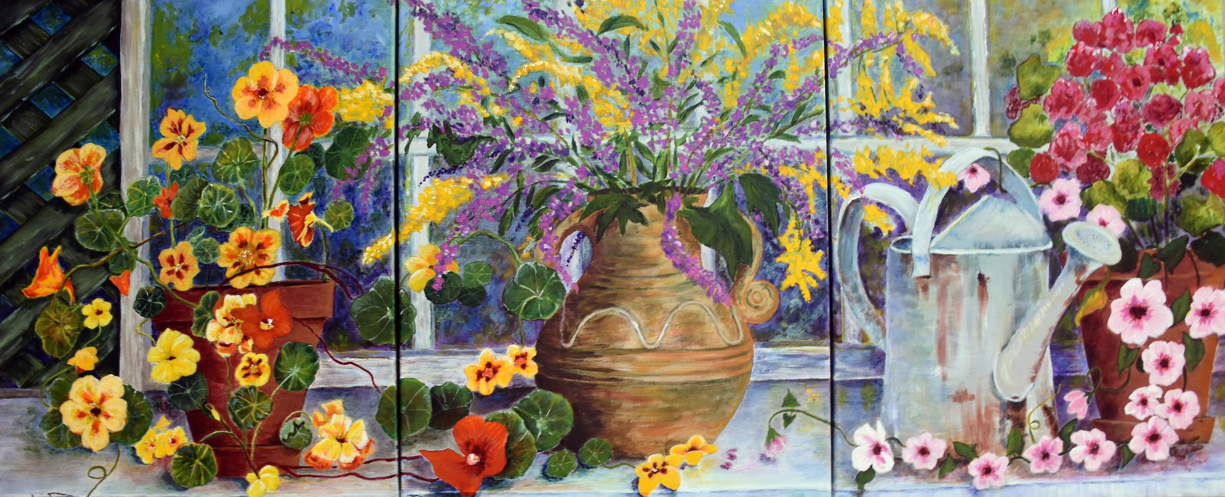 Still Life Triptych – Acrylic – 4’x21″ – commissioned piece – sold
