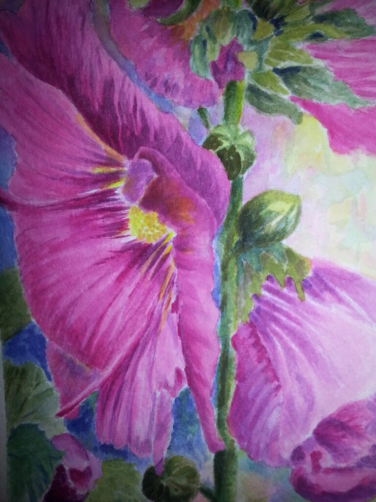 Hollyhock – Watercolour – 11×13″ – $110