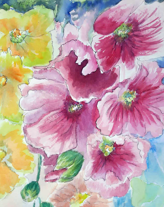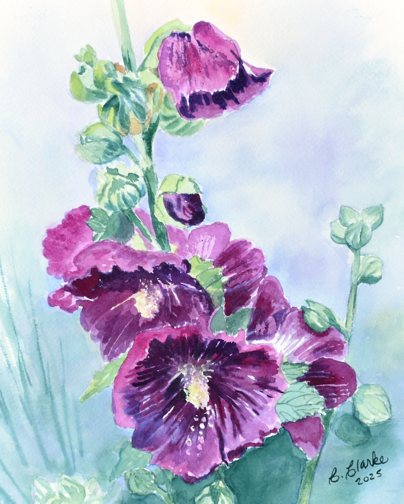 Hollyhocks – Watercolour – 11×13″ – $110