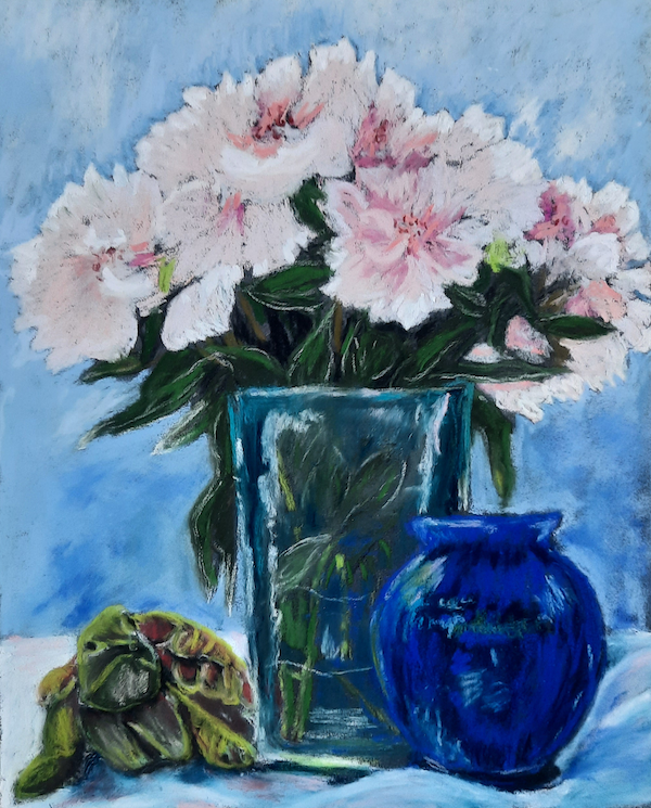 Still Life and Cobalt Glass – Soft Pastels – 28×37″ – $550